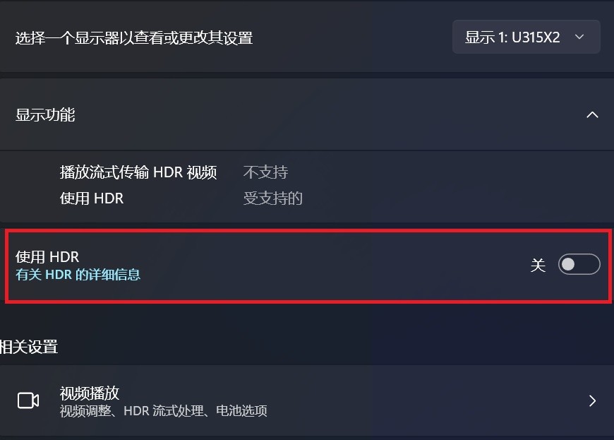 所以方法其实也很简单,平时用户全部将Windows设置在SDR模式下就行,也就是别打开HDR模式,然后看视频或者玩游戏的时候,如果应用必须要在Windows的HDR模式下才出现HDR选项,那么这个时候再打开系统的HDR。