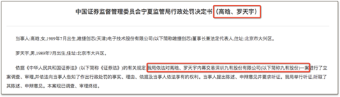 然后,说自己是“挂名董事长,不参与实际经营”的高晗,买起了九有股份的股票,指望着靠重组赚一波,结果后来,重组凉了,股票亏了,高晗夫妇也被证监会罚了。