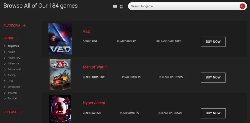 值得一提的是,除了上述的三个重要子公司外,1C Entertainment还拥有数个细分的业务公司,如为全平台独立游戏开发商提供游戏发行业务的1C Online Games等等,目前1C Entertainment已经拥有超过180款游戏产品,其品类也十分丰富,不过大多数都为独立游戏开发商的作品,暂且还没有当下意义上的3A游戏大作。