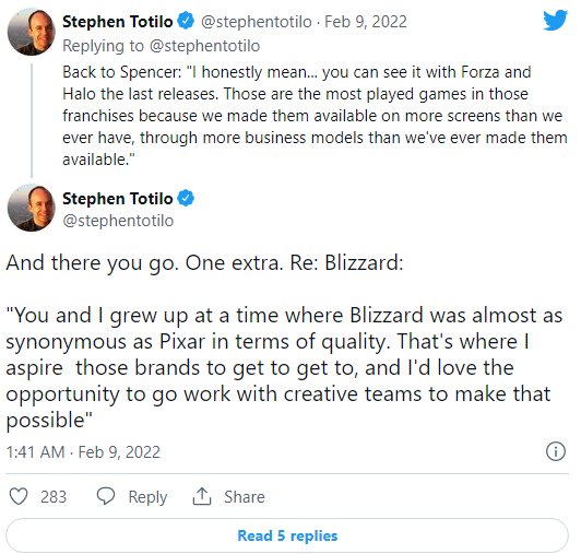 Xbox Gaming 负责人 Phil Spencer 也在 Axios 专访中提到,他认为暴雪娱乐在他以及各个玩家成长的过程中,是如皮克斯动画般具有重大意义的公司,排除问题并恢复当年看到这公司会充满的热血与荣光,是他最渴望达到的,并将扩大全新游戏 IP 的制作,包括先前正式宣布的未命名生存游戏外,官方也另外在招募一个未公布项目的开发团队,让创意继续化为无限可能。