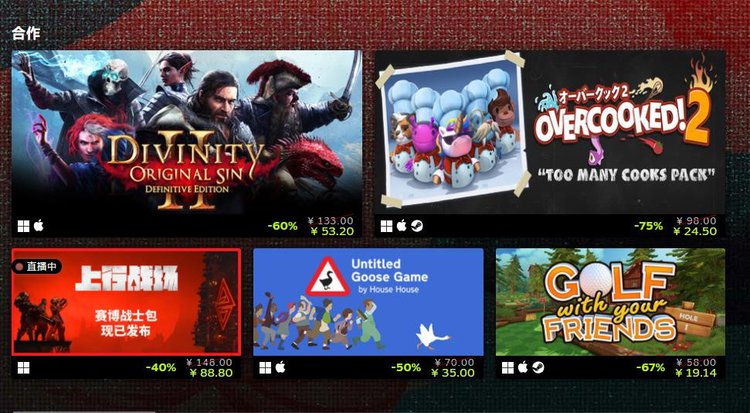 Steam 远程同乐特卖现已开启 《上行战场》、《胡闹厨房2》等作