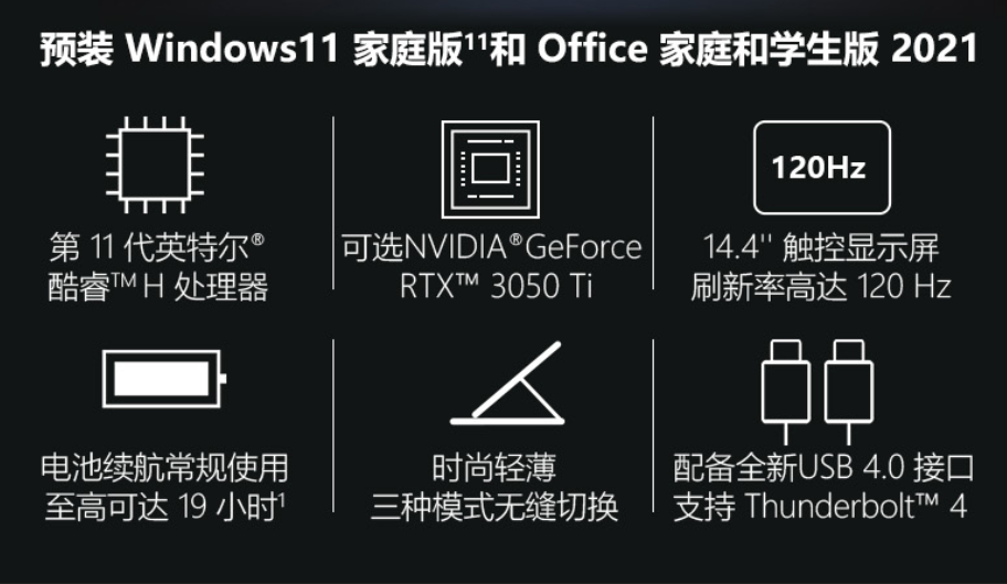 微软的Surface Laptop Studio有i5-11300H和i7-11370H两个处理器版本,不过很可惜都是11代酷睿。GPU可选RTX 3050 Ti或英特尔锐炬X。内存和硬盘大小都是可自由选择。屏幕为14.4英寸PixelSense Flow 120Hz刷新率3:2显示屏,分辨率为2400 x 1600,10点触控。高刷新率无疑会消耗更多的电量,为的是保证书写流畅。