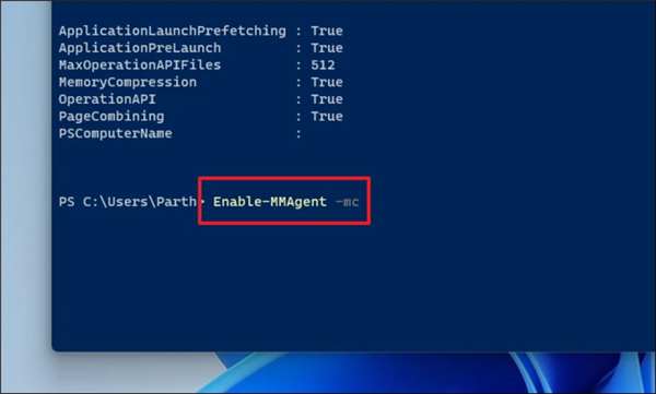 接着,输入以下命令:【Enable-MMAgent -mc】,回车运行。