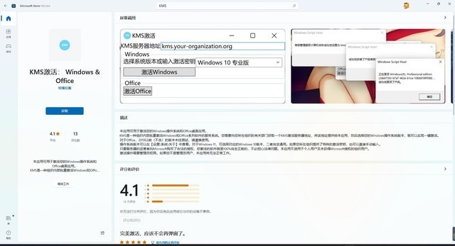 不过近日笔者发现,KMS居然登上了微软官方商店,而且还获得了4.1分的评分,以致于笔者蒙圈到不知该如何对此事做出评价,只能说微软狠起来确实连自己都打。