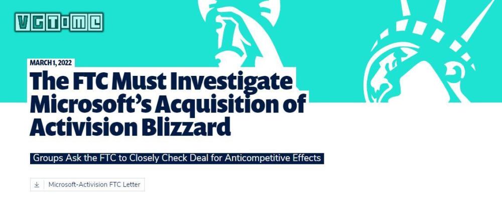 美国多家机构在 3 月 1 日联合致函美国联邦贸易委员会,要求全面审查微软收购动视暴雪交易案。