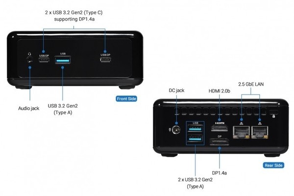 外部扩展方面,华擎NUC 1200 Box系列前面板配置了3.5mm耳机孔、2个USB 3.2 Gen2 Type-C、USB 3.2 Gen2 Type-A,背部则是2个USB 3.2 Gen2 Type-A、HDMI 2.0b、DP1.4a和两个2.5GbE LAN以太网口。需要注意的是,华擎正在为前置的两个Type-C端口进行USB4认证,而且外媒Anandtech认为,正面其中一个Type-C端口还会进行雷电4认证;但在获得认证之前,暂时以USB 3.2 Gen 2的展开宣传。