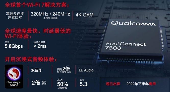 FastConnect 7800 提供了首个 Wi-Fi 7 解决方案,高通自称 " 全球速度最快且功能最全面的连接系统 "。