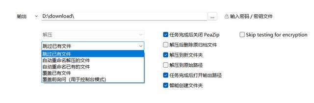 ▲ PeaZip 解压输出设置
