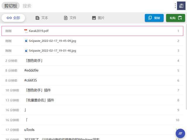 「剪贴板」插件保留了在电脑上复制过的文本,图片和文件,方便快速地选择粘贴。