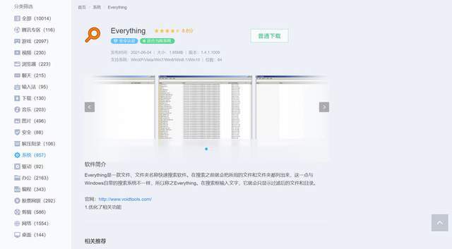 在搜索栏中输入想要安装的软件,例如搜索「Everything」,搜索到结果后,点击「普通下载」即可安装。