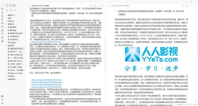 ▲ Obsidian 支持 Markdown 格式,且可拆分窗格同步显示编辑和预览效果