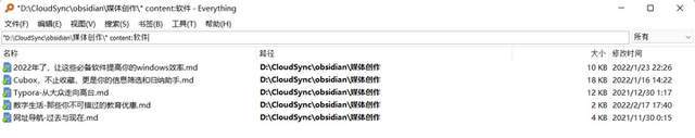 ▲ 在指定目录下搜索文本中含「软件」关键词的文档
