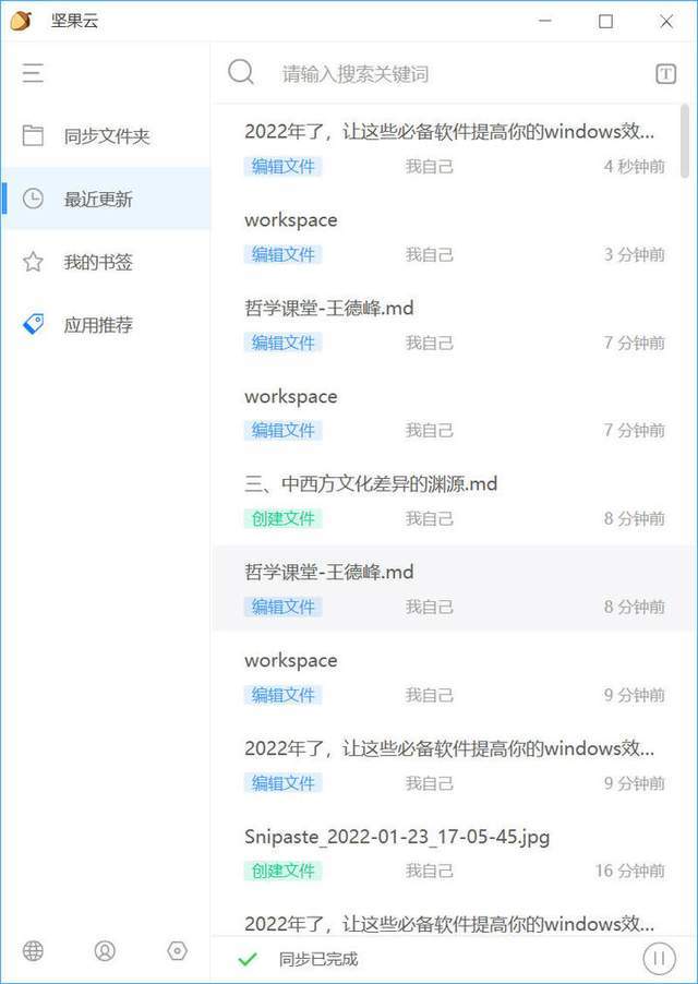 坚果云是一款全平台的文件同步软件,其拥有同类产品中最好用的实时同步功能。