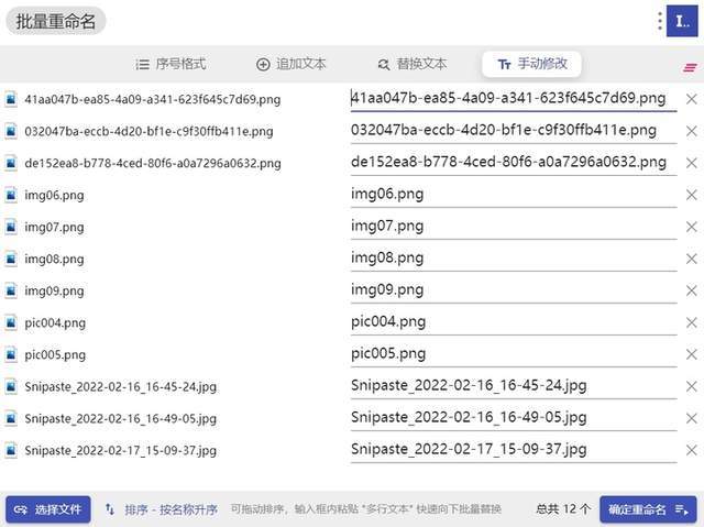 uTools 的「批量重命名」插件既能按照序号对文件进行顺序命名,也能逐个手动修改。对于文档类型的文件还可以向其末尾追加文本或者替换指定文本。