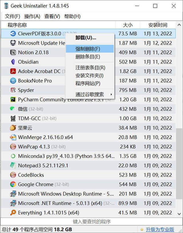 Geek Uninstaller 是一款强力的卸载软件,其免费版本已经足够个人用户使用。
