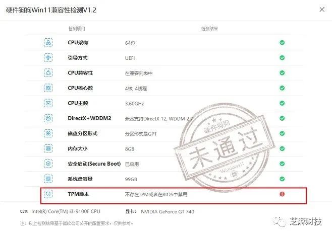 上图中,检测到小编的电脑未通过 Windows 11安装检测,给出的原因是 「不存在TPM或在BIOS中禁用」。