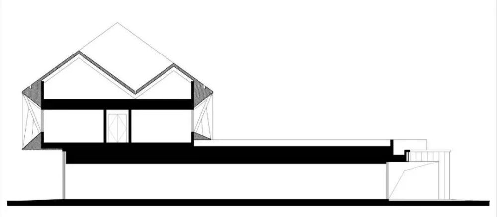 游客中心建筑采用深灰色金属坡顶,满足风貌区规划的要求。坡顶做了变形处理,和传统双坡屋面又有所不同。新建筑体量比风貌区的老房子要大一些,单一的坡顶变形为两个三角组合,改小了建筑的尺度感。