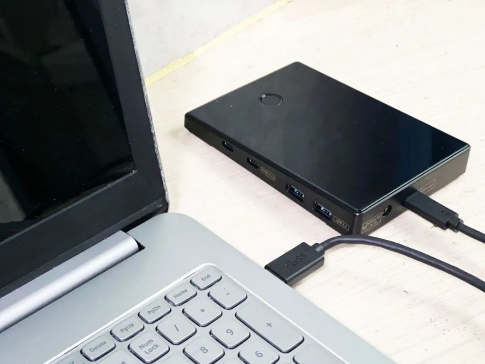无线吸附的扩展坞,插在电脑上看起来更加简洁,但很容易挡住旁边的接口,并且拔插设备时很容易将扩展坞一起拔下来。