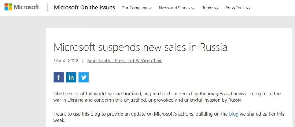 再说微软,在3月4日也宣布暂停在俄罗斯销售所有新的产品和服务,这其中,也包括了系统。
