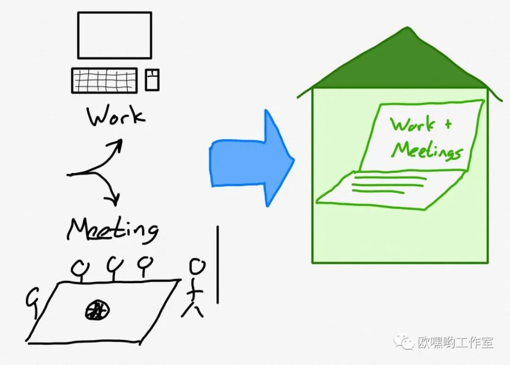 然而,这就是为什么我讨论了新冠病毒加速的物理贬值:几十年来,工作一直是物理目的地;现在它是一个虚拟目的地。虽然过去知识工作者日被分成了计算机上的单独工作和面对面的会议,但在过去两年里,面对面的会议变成了日历邀请上的链接,开启了视频会议电话。这是我上面提到的物理的降级: