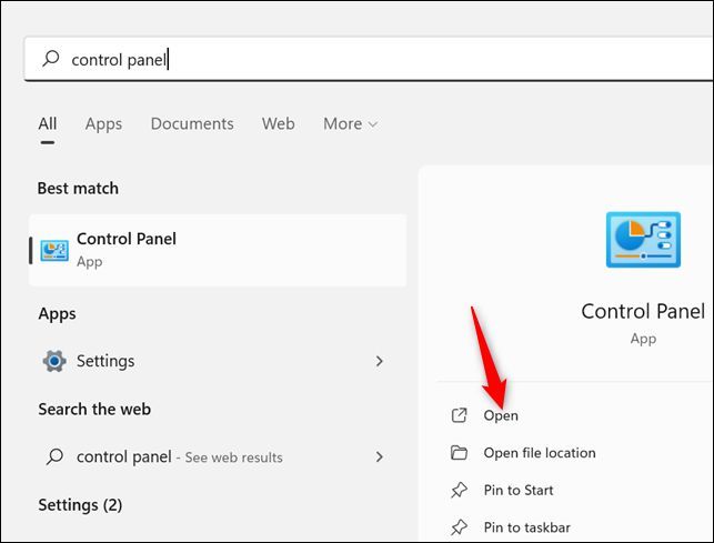如果您愿意,您仍然可以通过控制面板更改鼠标灵敏度。要访问控制面板,请单击开始按钮并在搜索框中键入“控制面板”。然后按 Enter 或单击“打开”。