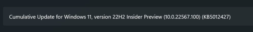 而在上周发布的 Windows 11 Build 22567.100 (KB5012427)的 Dev 预览版中,微软明确提到了“22H2”这个字样,说明新版本已经不远了。