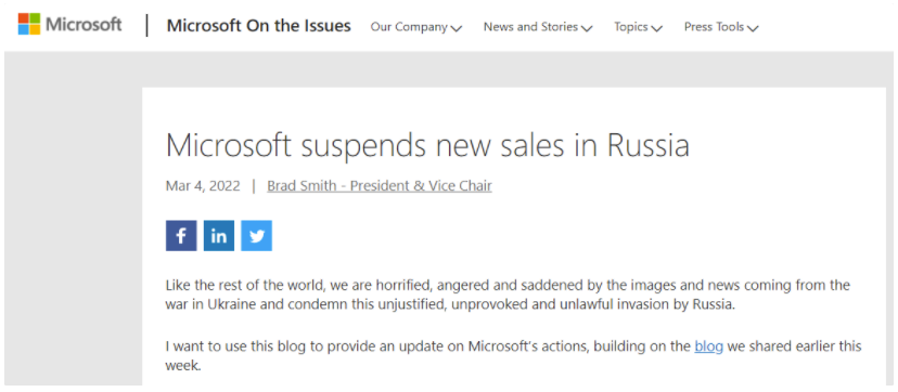 但在过去的两天里,微软、谷歌、甲骨文和苹果等科技人物 已经暴露出他们在俄罗斯的 商业计划调整。