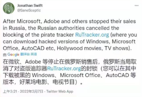 被各种制裁使用正版软件时,俄罗斯解禁了盗版网站!