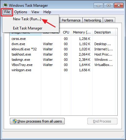 您的任务栏和通知区域( 以及任何活动文件资源管理窗口) 应该隐藏在无法查看的地方 。有时,大约一分钟后, Windows 将自动重新启动进程 。因此,最容易的解决办法是自己继续重新开工。在任务管理器中,单击单击“文件”菜单,然后选择创建任务(运行.. 我们无法完成) 。