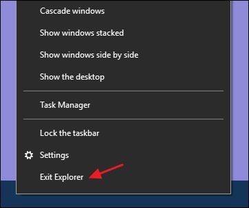 还有一个快速和容易的方法可以终止Windows资源管理程序。在Windows 8和Windows 10中,按下 Ctrl+Shift, 您可以点击任务栏中的任何空区域 。在新的上下文菜单中,要退出资源管理命令,请单击。