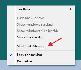 与 Windows 8 和 10 相对, Windows 7 没有给出简单的重新启动指令。 相反, 您必须完成程序, 然后以两个不同的步骤重新启动它。 右键单击任务栏中的任何空白空间, 然后选择任务管理器 。