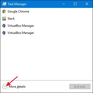 在任务管理器中,请单击进程标签。如果您看不到,请单击窗口底部的“更多信息”,以查看额外的可能性。