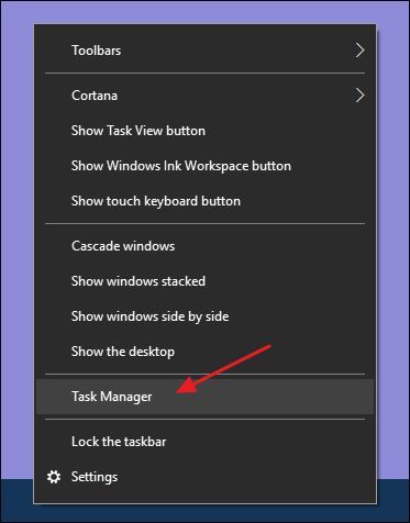 访问 Windows 8 或 10 中的任务管理器,右键单击任务栏上的任何空白位置,然后选择任务管理 。