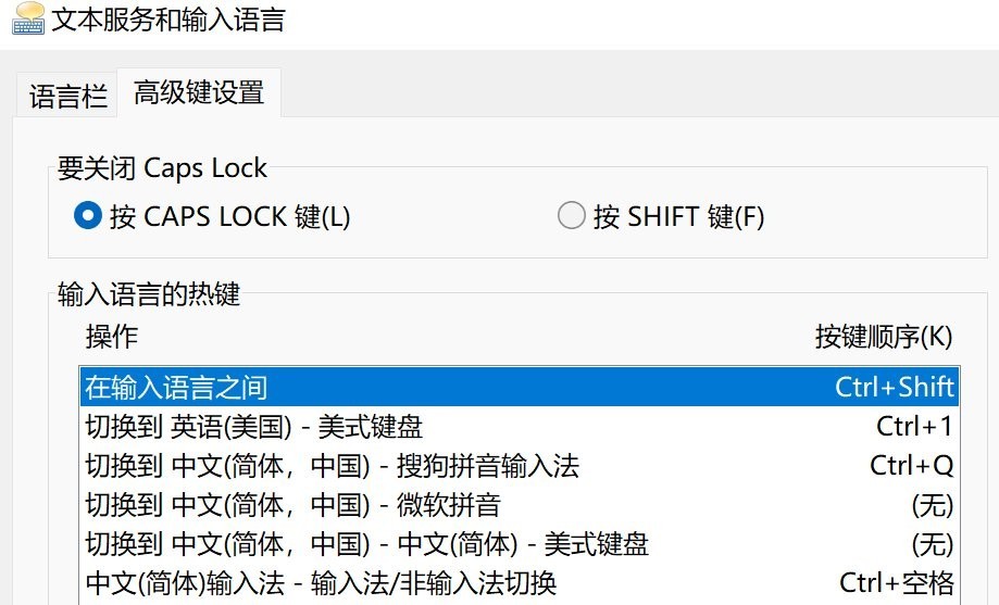 在第一步的三点, 设置输入法和英语键盘作为您想要的快捷键。 由于新版本的 Windows 的局限性, 自我定义的程度相当有限, 但它并不矛盾 。