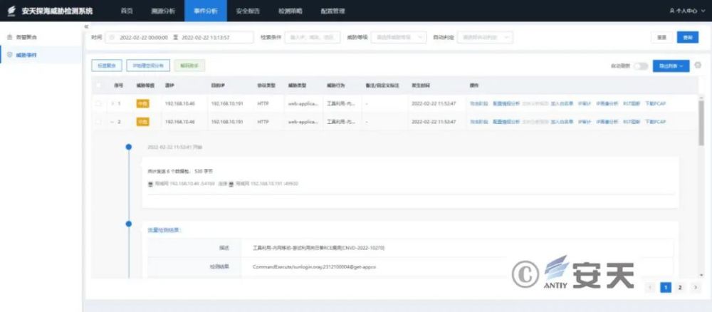 安天探海有效检测向日葵远程代码执行漏洞利用行为