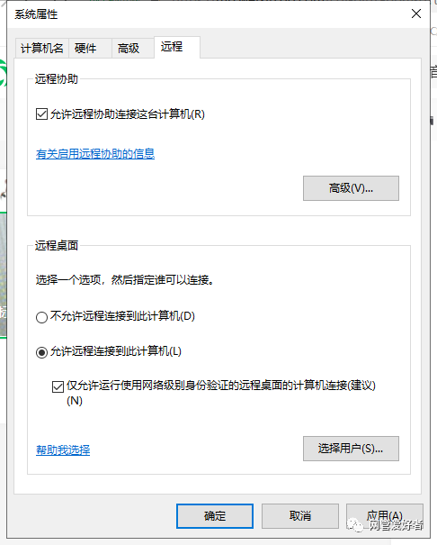 -->下面取消勾选项"不允许连接这台计算机"(任意允许均可)-->应用