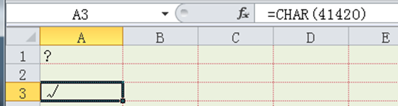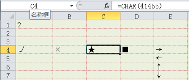 已知代码为41420(不在正常的ACSCII代码中),可使用=CHAR(4120)迅速获取。