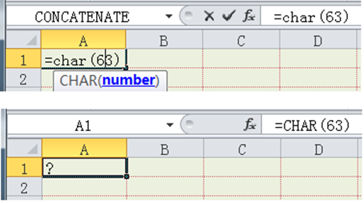 众所周知,该代码为63,可以用公式=CHAR(63)得出?