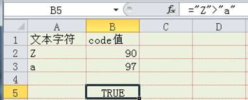但是"Z">"a"(不符合ASCII码值的大小,因为Excel忽略了大小写)