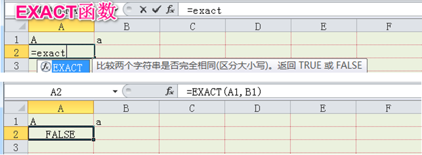 最后,Excel中有一个称为精确的函数,可用于确定两个字符串是否完全相同,在本案中,案件是针对具体案件的。