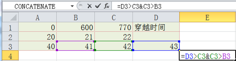 =AND(C1>B1,B1>A1)结果为TRUE,770大于600,同时600大于0的问题;