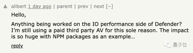 一名网络开发商还指出,Windows Defense的安保足以有利于在硬盘上读写过慢。