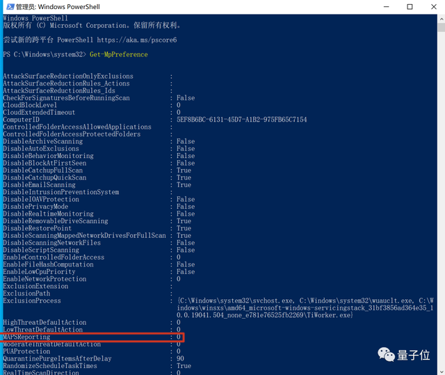为了查看安全设置,使用带有行政权的PowerShell, 并使用 " Get-MpRference " 类型。