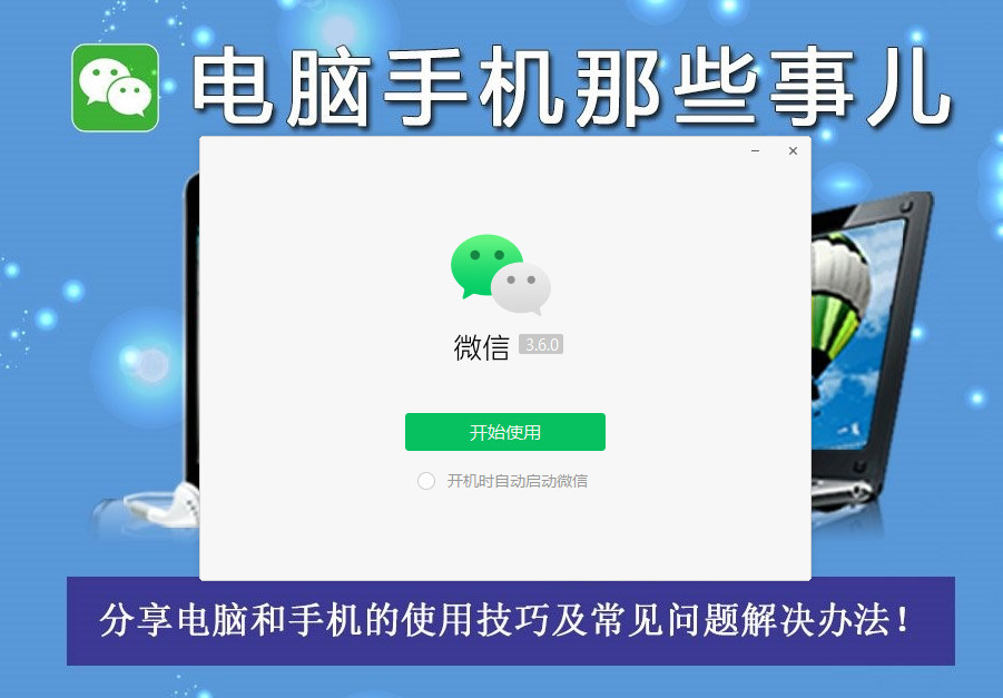 安装微信3.Six.在0个内部控制版本之后,在初始界面中的 " 启动使用 " 按钮中添加了一个选项,以便在计算机打开时自动启动微信,使微信在未来与计算机同时打开。