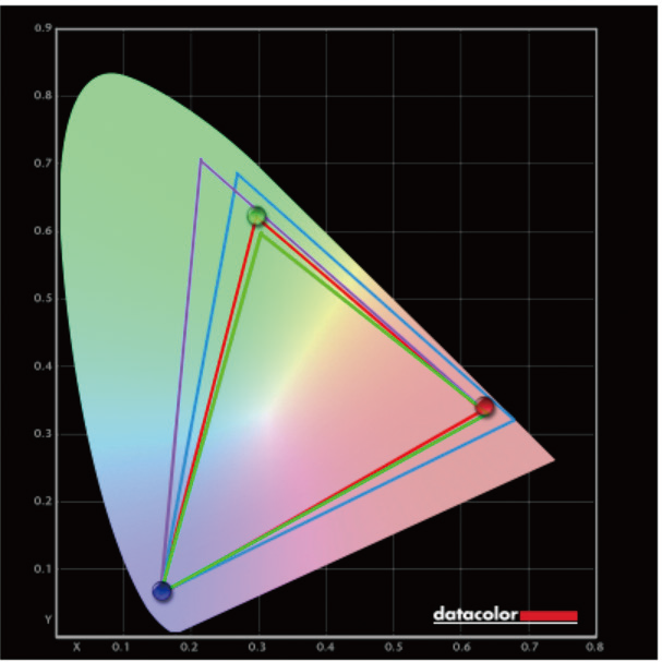 屏幕的颜色也很好看我们得以确定SRG颜色区域的大小为98%。该区域77%的面积由DCI-P3的颜色空间覆盖。它涉及访问网站和观看视频。有一种奇妙的视觉体验。只是机器的镜像屏幕会反射出来在低光情况下很难使用