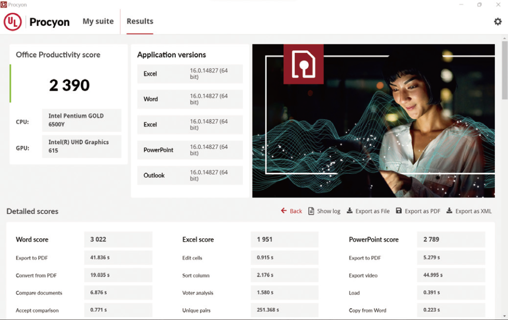 在UL Procyon办公室应用测试中,计算机获得2 390点。
