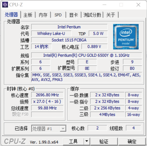 处理器: Intel Bentten Gold 6500Y(2N4线,1.1GHz3.4GHz)。
