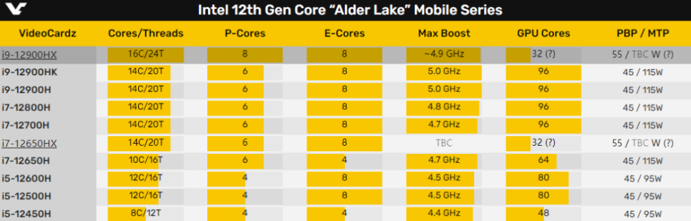 12代酷睿H55处理器i9-12900HX曝光,移动端迎来16核