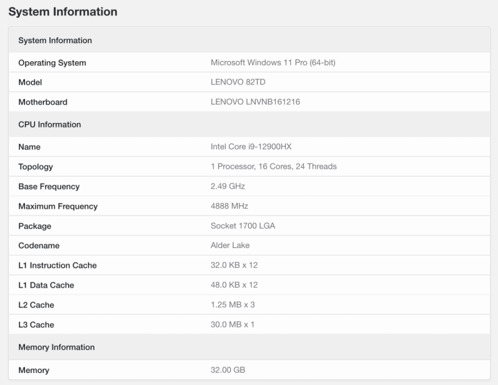 在Geekbench数据库中 刚刚发现了一个未知模型的共享笔记本已安装9-1290HX冷酷智能设备。H55系列高于Kotsumi 12代移动版本。它的性质与i9-12900KS相同。这是专门化鸡血型处理器的特性。