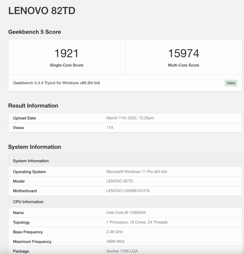 据Geekbench统计,i9-12900HX有16条24线核(8条主要核+8微型核),是“酷智系列”第一批16个核移动处理器之一。